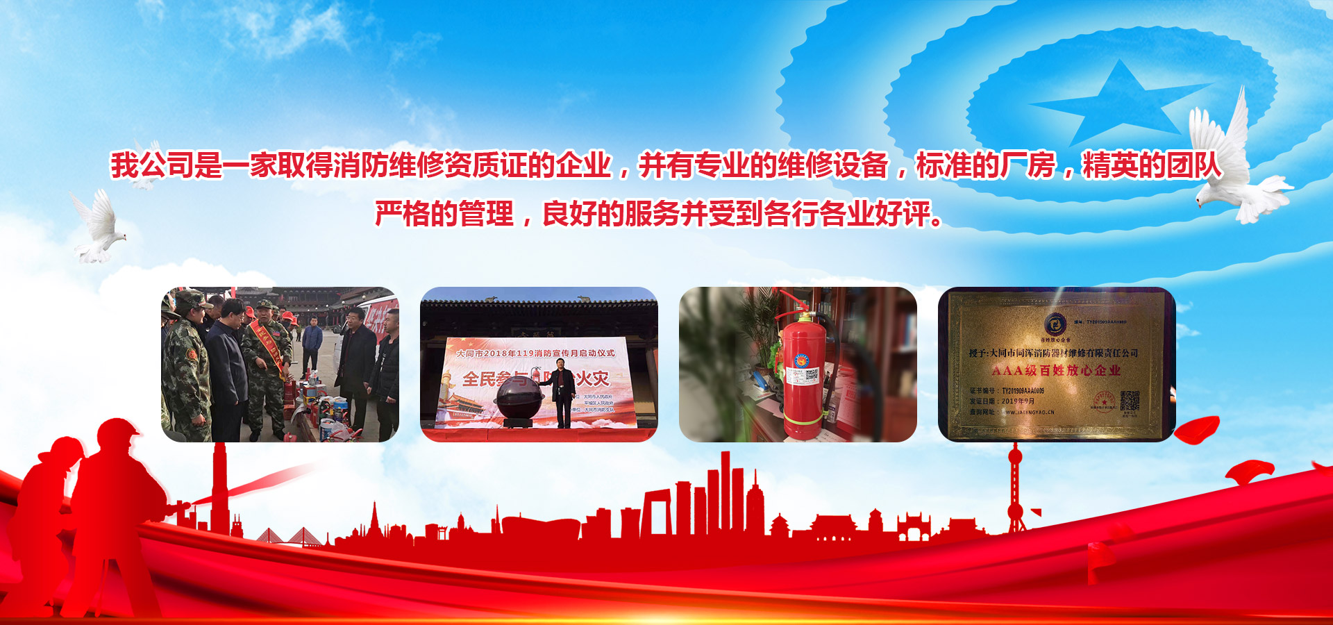 大同市同渾消防器材維修有限責(zé)任公司,位于大同市同泉路389號(hào),始建于2000年,是公安部消防局定點(diǎn)銷(xiāo)售和維修的企業(yè),歷經(jīng)多年的創(chuàng)建、發(fā)展和拼搏,現(xiàn)有多家消防器材廠商供應(yīng)我公司,并有現(xiàn)代化維修設(shè)備,標(biāo)準(zhǔn)的廠房,嚴(yán)格的管理,優(yōu)良的設(shè)備,良好的服務(wù)并受到各行各業(yè)的好評(píng)。總經(jīng)理劉國(guó)玉嚴(yán)格管理,嚴(yán)格要求,精益求精,認(rèn)真負(fù)責(zé),帶領(lǐng)團(tuán)隊(duì)熱烈歡迎各界朋友顧客光臨。